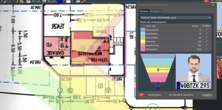 Mit einer speziellen Software simulieren wir bei der Projektierung Blickwinkel und Bildauflösung.